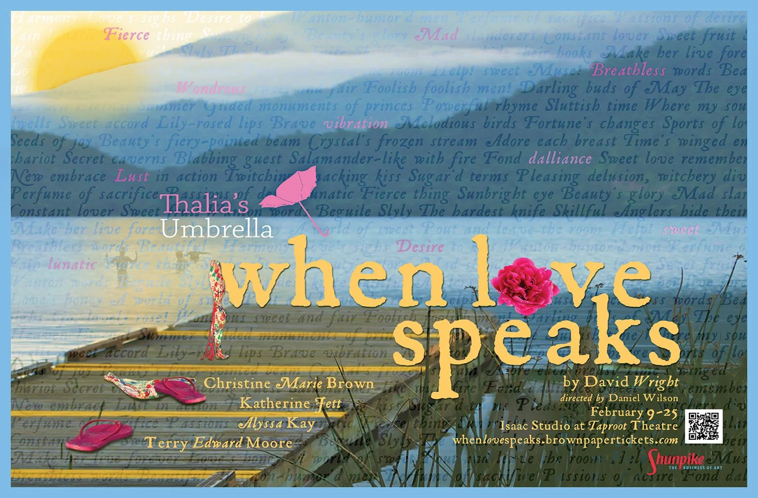 Four people meet at a resort at the edge of the world. They fall in and out of love, woo and argue … all while speaking some of the best (and some of the worst!) love poetry ever written.